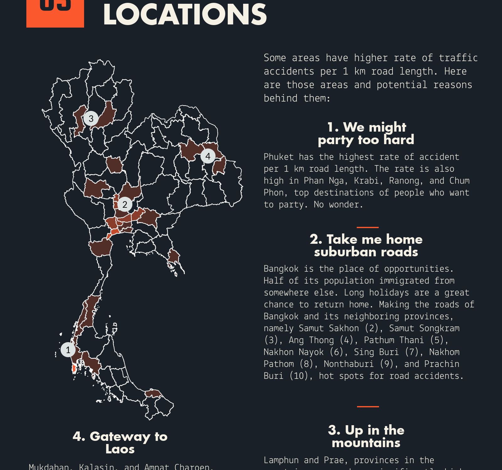 April 6, 2018 Infographic – New Year’s Traffic Fatalities in Thailand Link: https://create.piktochart.com/output/28754664-new-year-traffic Share this:TweetShare on TumblrLike Loading... Related