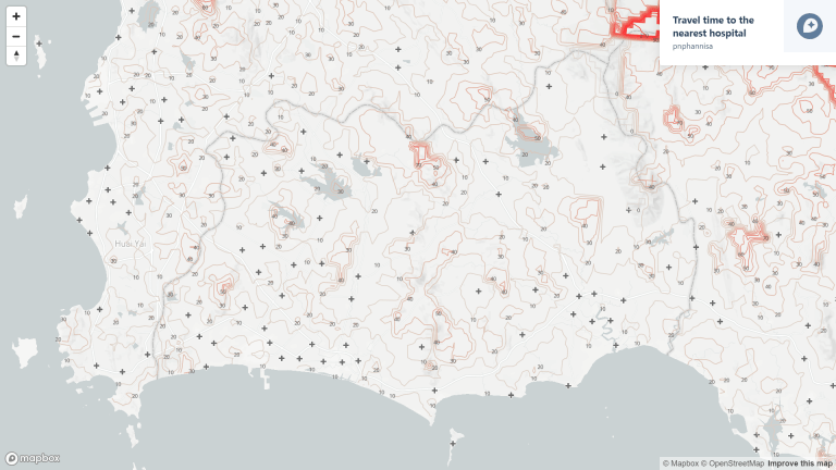 An interactive map of travel time by cars to the nearest healthcare facility from anywhere in Thailand