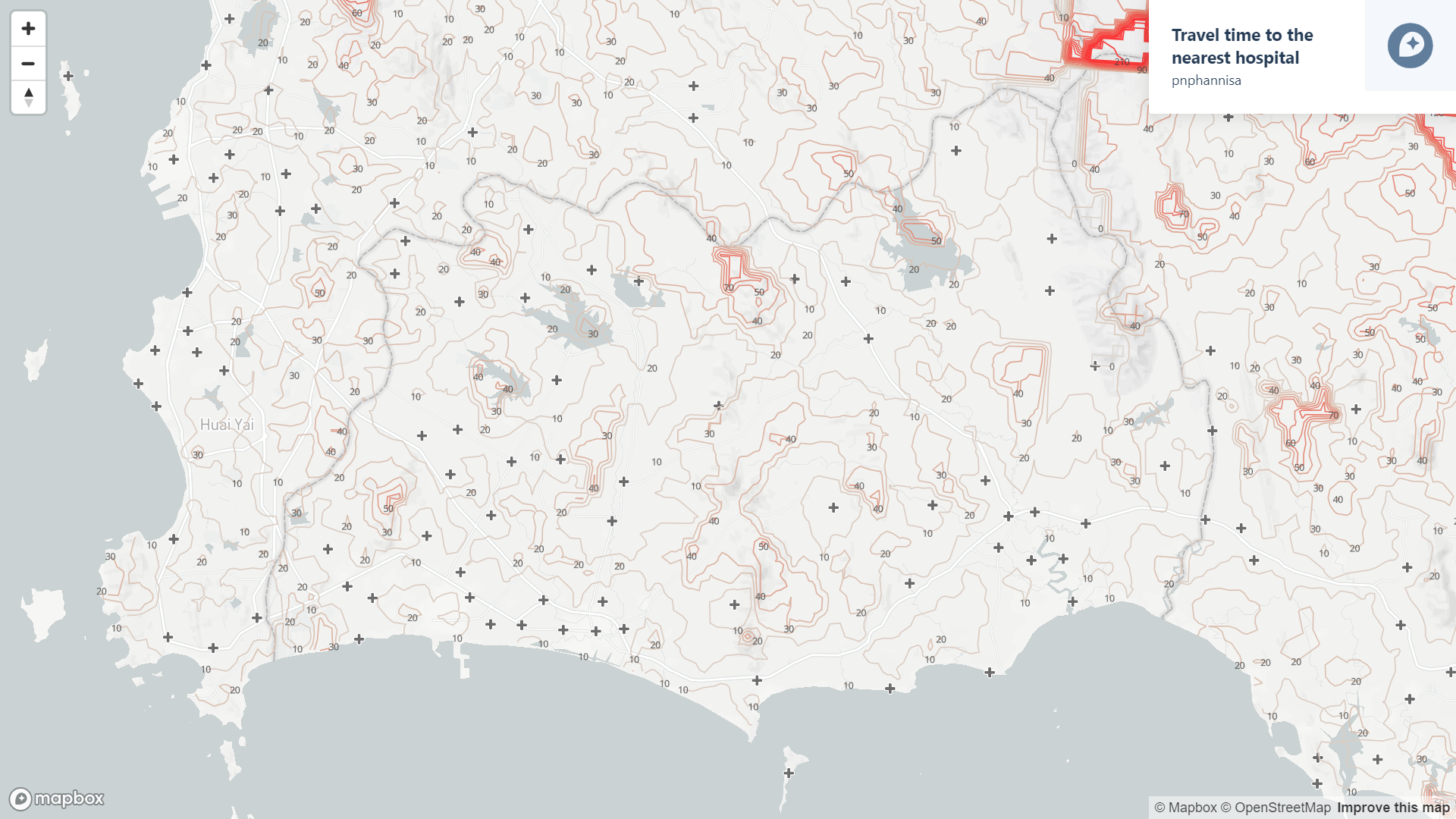 An interactive map of travel time by cars to the nearest healthcare facility from anywhere in Thailand