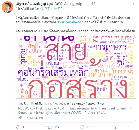 - Representative Natthaphong Ruengpanyawut’s official Twitter on June 13, 2020