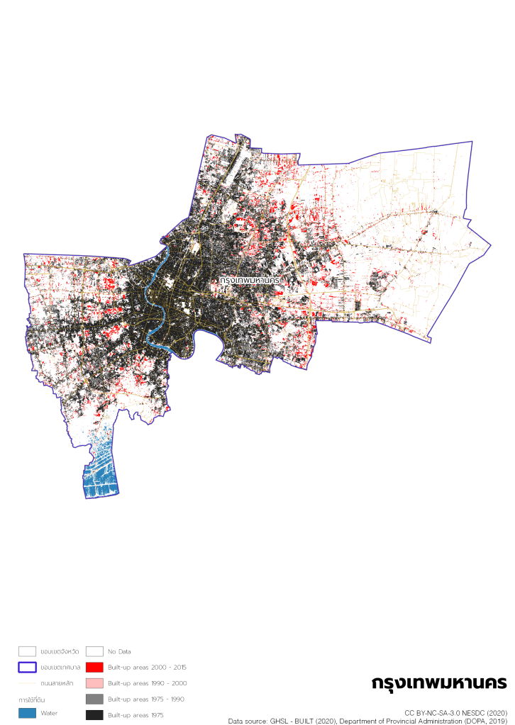 Following UN’s suggested methodology using land use data from Department of Land Development and population data from Department of Provincial Administration (กรมการปกครอง).