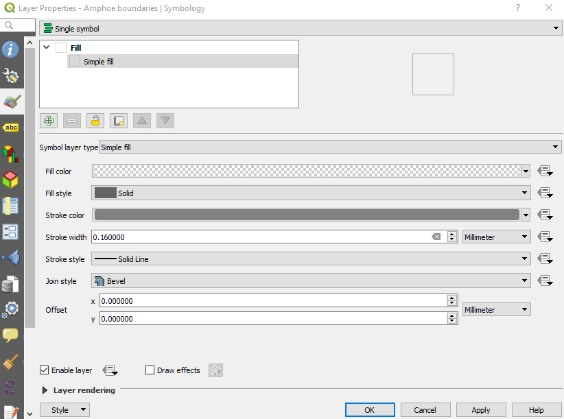 The next important layers are boundaries. Province and district boundaries, the topmost layers, should be transparent to make the other layers under them visible.